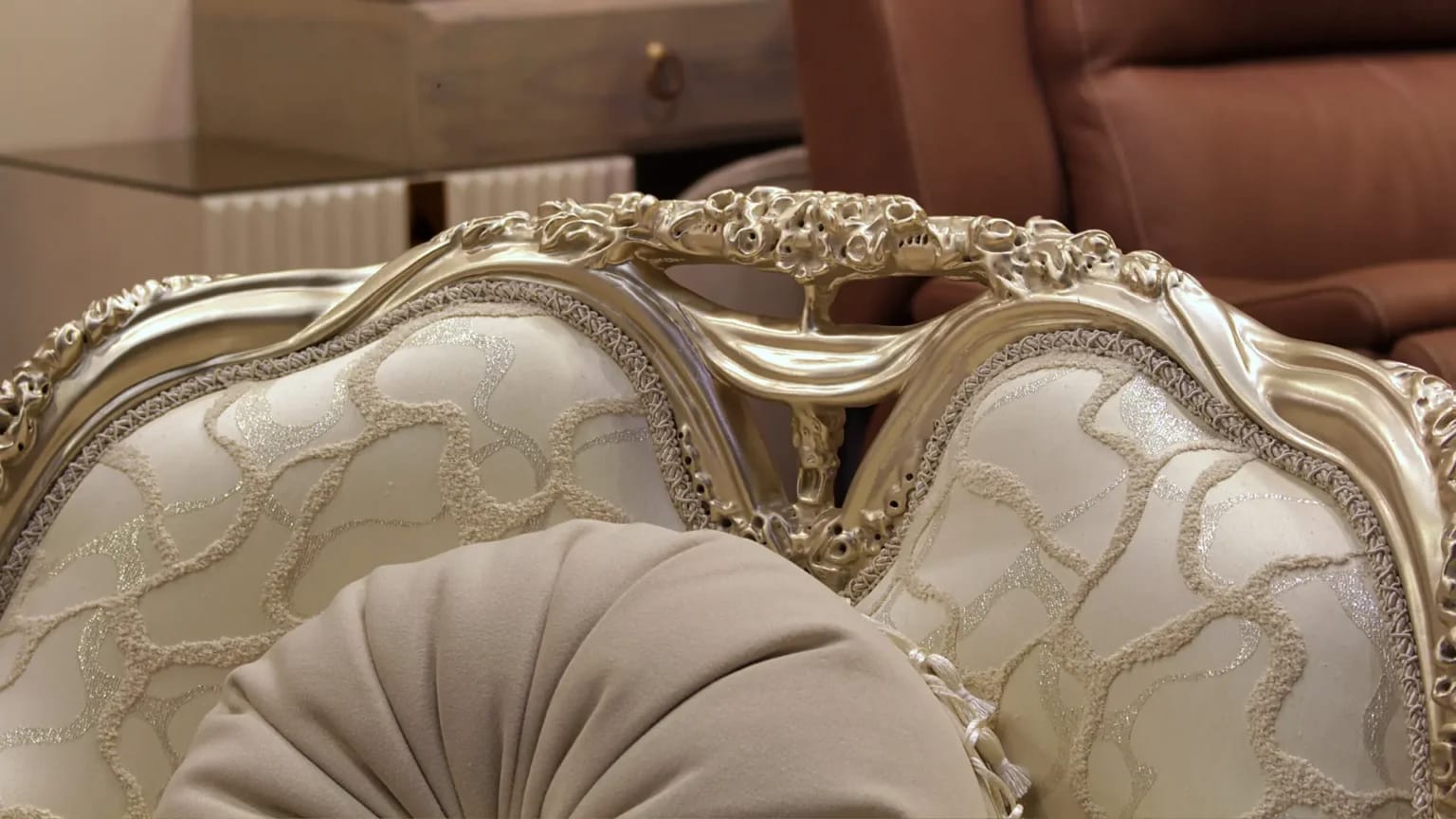 الصالون معمول من خشب زان روماني أحمر تقيل وقوي، النوع اللي يعيش سنين ويستحمل الاستخدام من غير ما يتأثر، ويدي إحساس بالفخامة والثبات من أول مرة تشوفه.