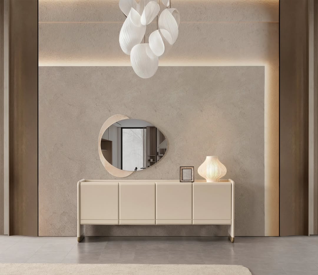 مرآة عصرية تضيف إحساسًا بالاتساع وتكمل جمال البوفيه