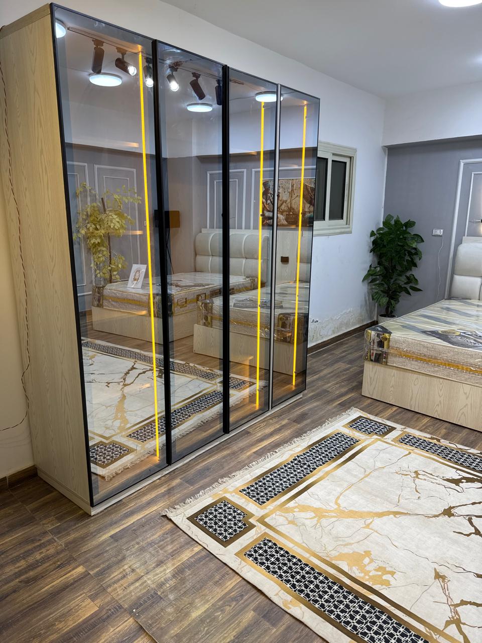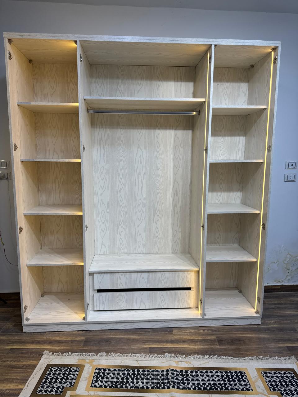 • الدولاب: عرض 200 سم × ارتفاع 225 سم