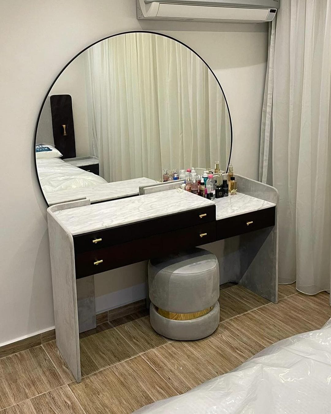 تسريحة فاخرة بعرض 120 سم مزودة بمرآة بلورية تعكس الجمال وتضفي لمسة من الفخامة على غرفة نومك.