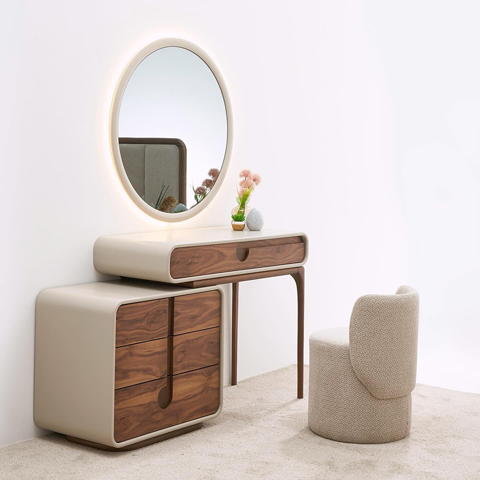 🪞 تسريحة 120 سم مع مرآة بلورية تعكس الضوء وتضفي إحساسًا بالرحابة والبهجة. مساحة مثالية لروتينك اليومي.