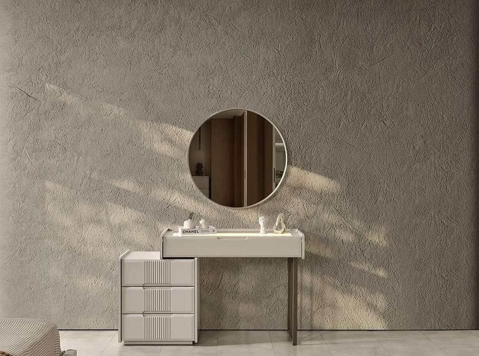 🪞 تسريحة 120 سم مع مرآة بلورية تعكس الضوء وتضفي إحساسًا بالرحابة والبهجة. مساحة مثالية لروتينك اليومي.