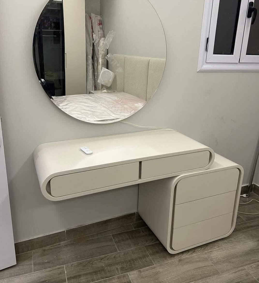تسريحة فاخرة بعرض 120 سم مزودة بمرآة بلورية تعكس الجمال وتضفي لمسة من الفخامة على غرفة نومك.