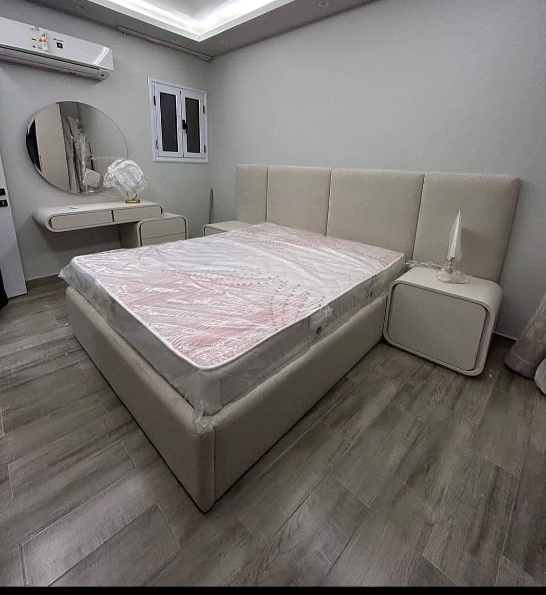 سرير بمقاس 160 × 210 سم، بتصميم يجمع بين الراحة والعملية، ليمنحك تجربة نوم هادئة ومريحة.
