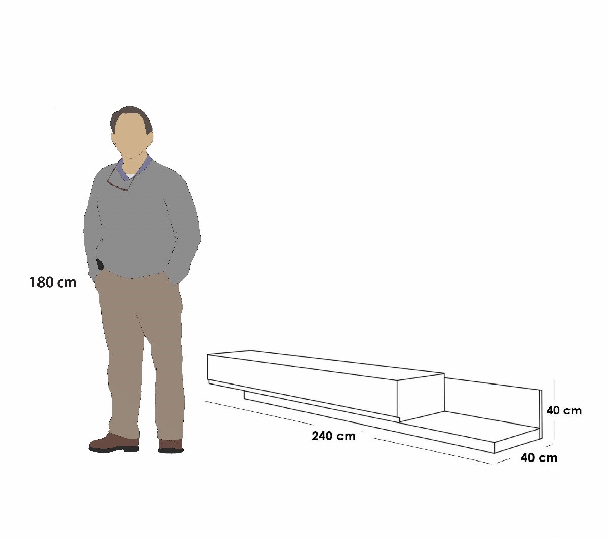 الأبعاد: 240سم عرض × 40 سم عمق × 40سم ارتفاع