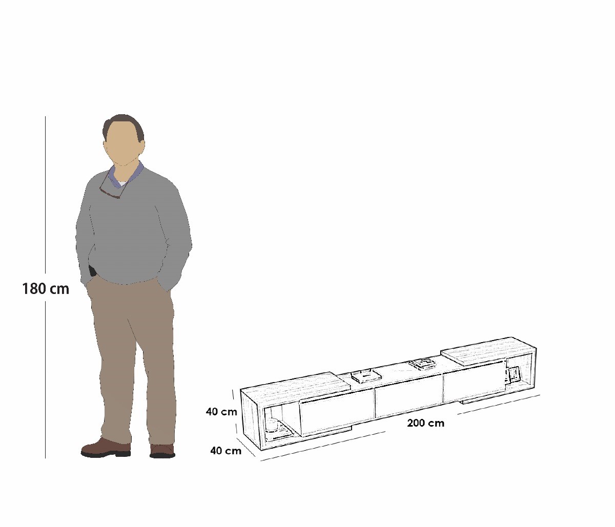 الأبعاد: 200 سم عرض × 40 سم عمق × 40سم ارتفاع والتربيزه عرض100 سم x عمق 50 سم x ارتفاع40 سم
