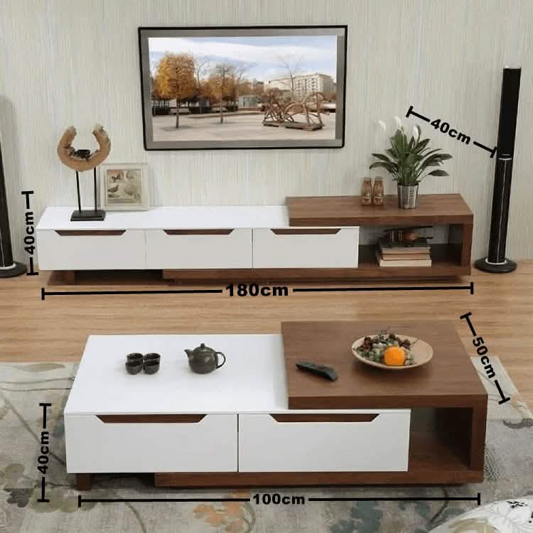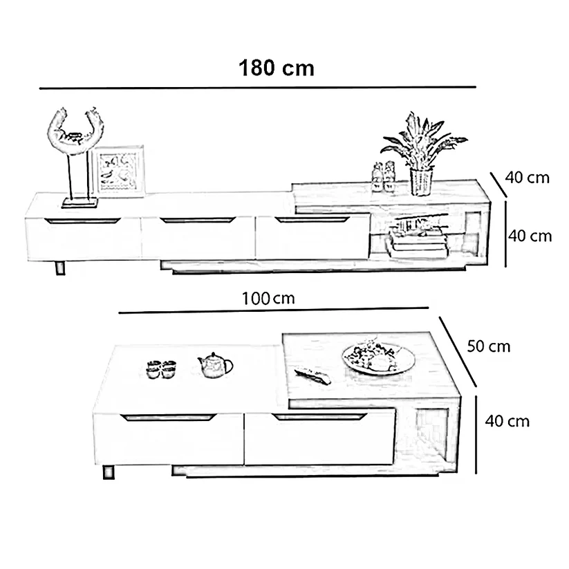الأبعاد: 180سم عرض × 40 سم عمق × 40سم ارتفاع والتربيزه عرض 100سم x عمق50 سم x ارتفاع 40سم