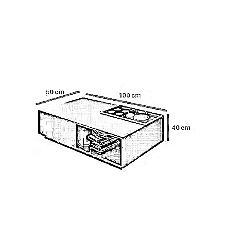 الأبعاد: 240سم عرض × 40 سم عمق × 40سم ارتفاع والتربيزه 100 سم عرض × 50سم عمق × 40 سم ارتفاع